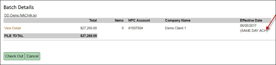 You will also that see your batch is marked as Same-Day ACH on the summary screen.